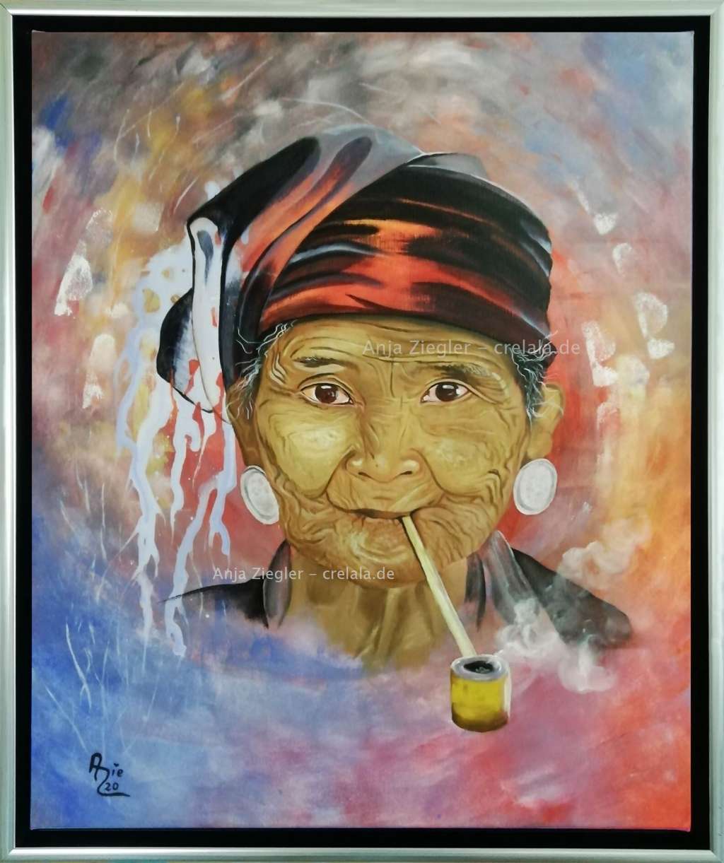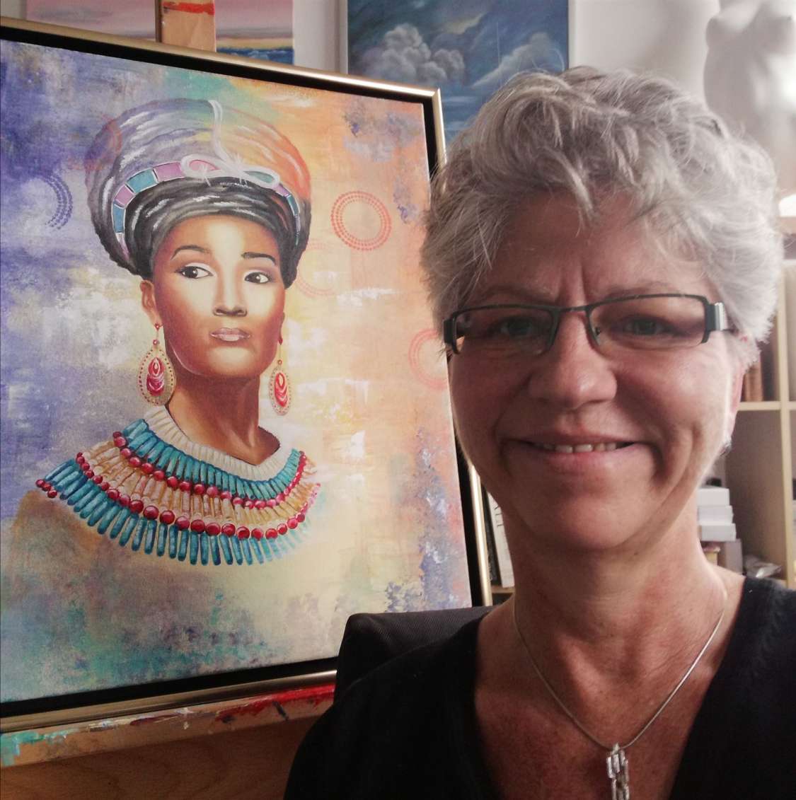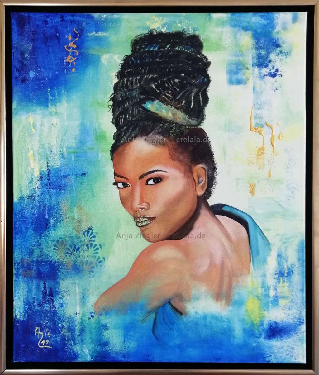 Nahezu alle ihre Portraits strahlen Schönheit, Würde und die menschliche Vielfalt aus. Farbintensive, filigrane Portraits auf abstrahiertem Hintergrund. Mit ihren Gemälden möchte sie zeigen, daß alle Frauen gleich wertvoll sind, egal welcher Herkunft, welcher Hautfarbe, welcher Religion und welchen Alters!